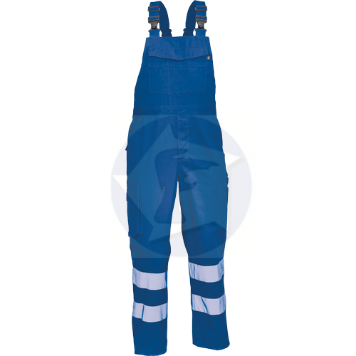 - pánske pracovné nohavice s náprsenkou so 7 cm reflexnými doplnkami, elastický pás, 2 bočné vrecká + 1 vrecko na drobné,