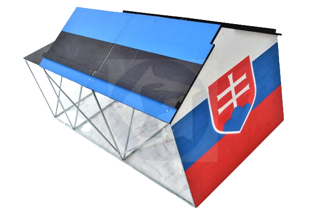 disciplína štafeta 4×100 umiestnenie prvý úsek Materiál čelnej časti preglejka materiál konštrukcie oceľová konštrukcia materiál výdrevy preglejka, vodeodolná preglejka, smrekové drevo protišmykový povrch na streche domčeka, obojstranne, tartan áno materiál povrchu Remapur 10 mm rozložiteľná konštrukcia áno možnosť rozšírenia áno, doskok pre dorast Rozmery 5 x 2,5 x 2,5 m vymeniteľné časti dorazové sedla pre rebrík, tartan, strešná krytina farebné prevedenie slovenská trikolóra, fotka je ilustračná