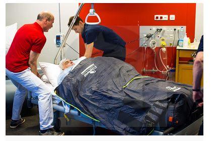 Je jedinou evakuačnouplachtou pre do 300 kg, ktorá je trvalo umiestnená pod matracom postele.Extra brušné pásy fixujú pacienta namatrac.