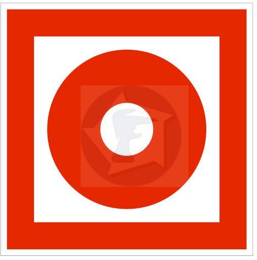 - symboly majú štvorcový tvar, červený podklad, farba požiarneho symbolu je biela