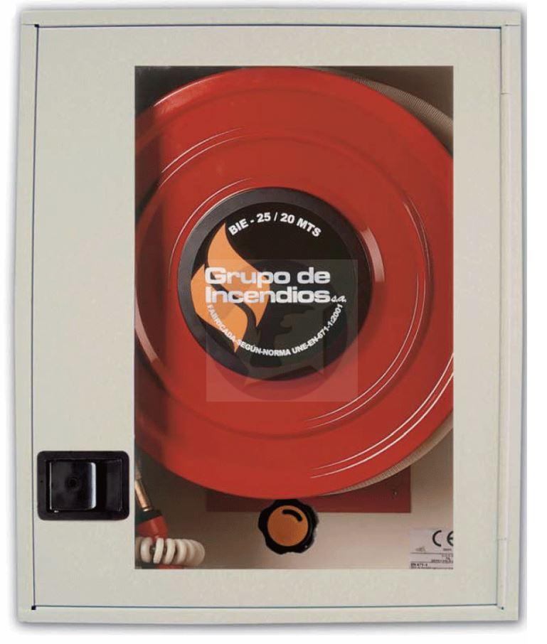 Hydrantový navijakový hadicový systém s tvarovo stálou hadicou priem. 25mm, dĺžky 20m, rozmery (výška, šírka, hĺbka) 750 x 600 x 195 mm, prúdnica s uzáverom, mosadzný ventil s tlakomerom a polospojkou, hadicový navijak pevný, zámok ABS so systémom ľahkého otvárania a revízie,vyhotovenia plnoplechové, s priehľadným plastikovým sklom, plnoplechové nerezové, nerezové s priehľadným plastikovým sklom, certifikovaný podľa EN 671-1