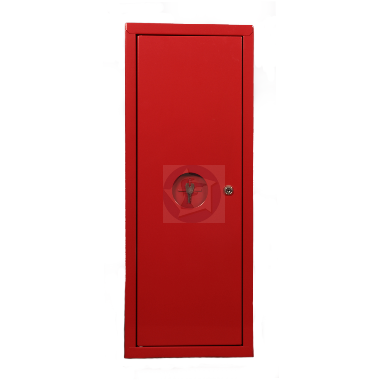 Skrinka na práškový hasiaci prístroj 6 kg, plechová s celoplechovými dvierkami so skrinkou na núdzový kľúč, rozmery 250 x 250 x 550 mm.