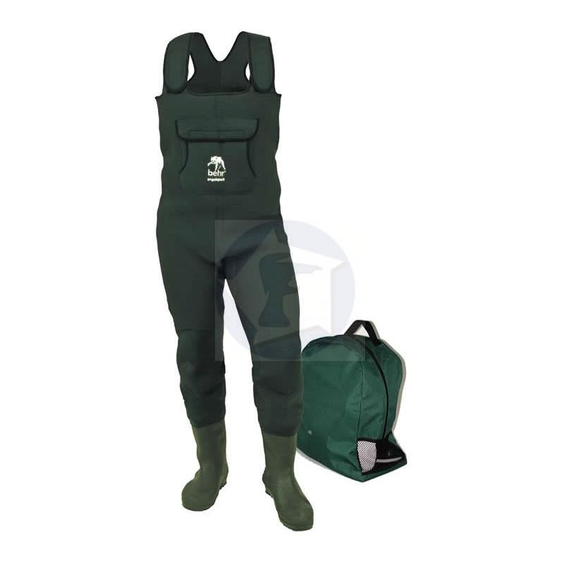 Veľmi obľúbené, kvalitné neoprénové brodiace nohavice z produkcie nemeckej firmy Behr. Dodávajú sa v praktickej prenosnej taške. Hrúbka neoprénu 4mm.