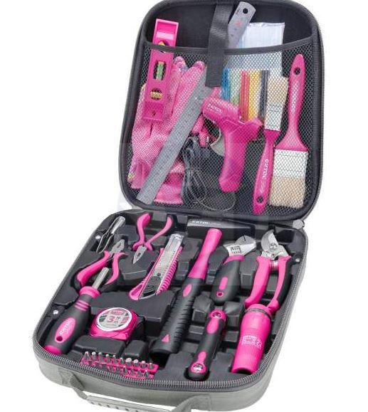 Univerzálna sada navrhnutá pre dievčatá, ženy a dámy, s ktorou vás nič nezaskočí. Kedykoľvek budete potrebovať niečo premerať, zaskrutkovať, povoliť či utiahnuť, odrezať, vyvážiť, zatĺcť či natrieť, zalepiť, na niečo si posvietiť, alebo si trebárs ustrihnúť ružu v záhrade, táto sada v elegantnom mäkkom kufríku vám bude vždy po ruke - a vy budete úplne nezávislá!