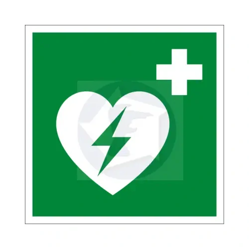 Automatizovaný externý defibrilátor srdca – bezpečnostný symbol, ktorý sa používa na znázornenie polohy defibrilátora AED.